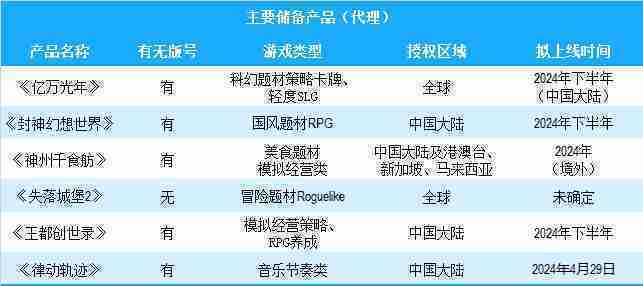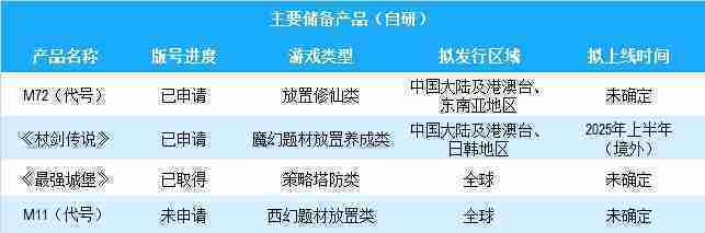 公司有多款储备产品,,涵盖放置类、、、策略类、、、、RPG、、Roguelike等多元化游戏品类,,储备的主要自研和代理产品如下::::