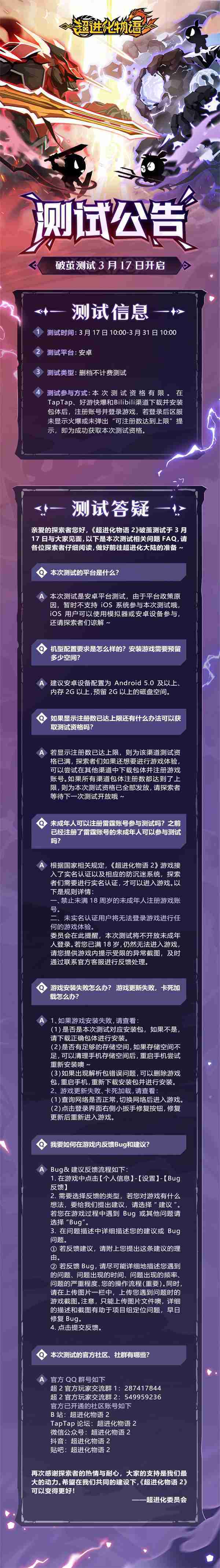 《超进化物语2》首次限号不计费删档测试——「破茧测试」将于3月17日开启,,随我们确认测试细节,,明天迈出踏上超进化大陆的第一步吧!!!!